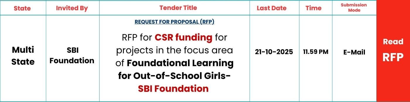 Summary of RFP 2025 – CSR Funding for Foundational Learning for Out-of-School Girls by SBI Foundation