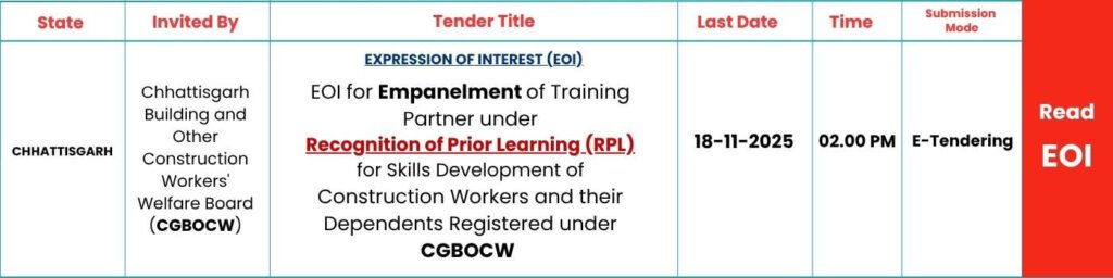 EOI for Empanelment of Training Partners under Recognition of Prior Learning (RPL)-CGBOCW