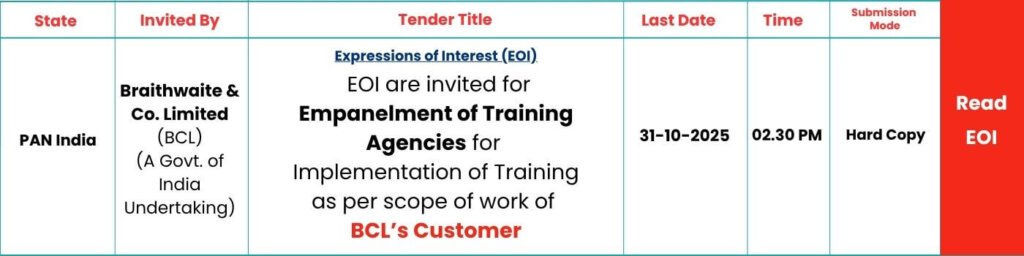 EOI for Empanelment of Training Agencies for Skill Development for BCL’s Customer