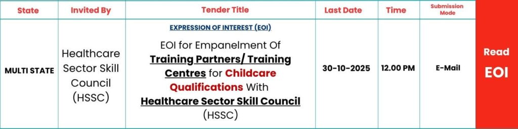 Detailed Summary: EOI for Empanelment of Training Partners for Childcare Qualifications with HSSC 1. Introduction The Healthcare Sector Skill Council …