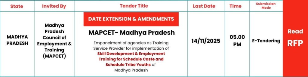 RFP for Empanelment of Training Service Providers for Skill Development & Employment Training of SC/ST Youth-MAPCET