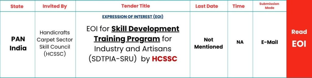 EOI for Skill Development Training Program for Industry and Artisans (SDTPIA-SRU) by HCSSC