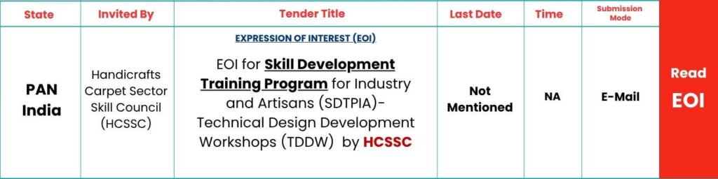 EOI for Skill Development Training Program for Industry and Artisans (SDTPIA-TDDW) by HCSSC
